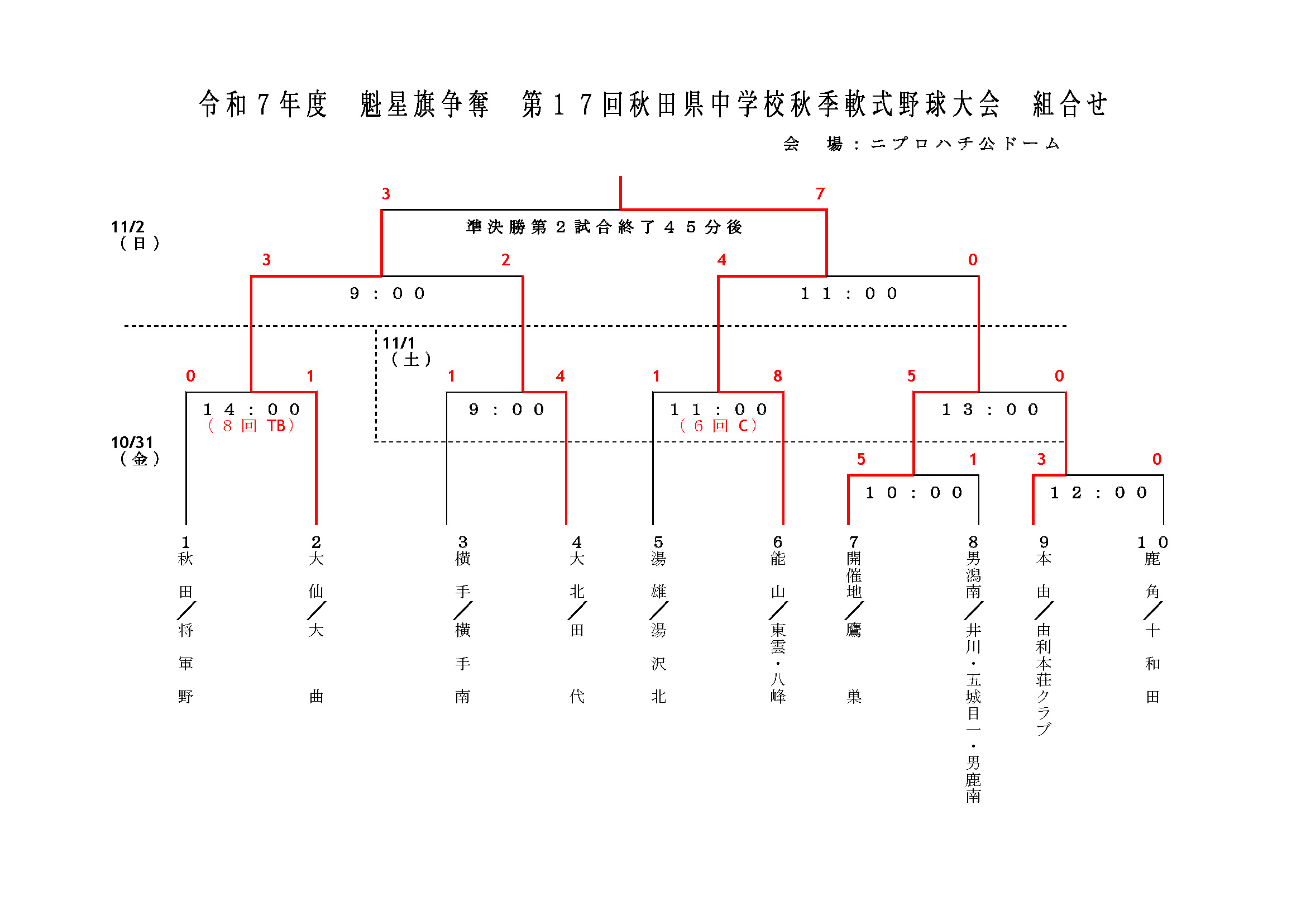 令和7年度 魁星旗争奪 第17回秋田県中学校秋季軟式野球大会 結果