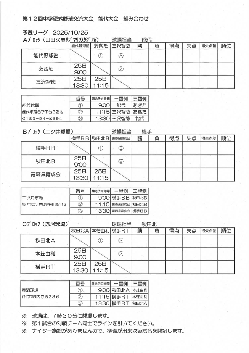 第12回中学硬式野球交流大会能代大会